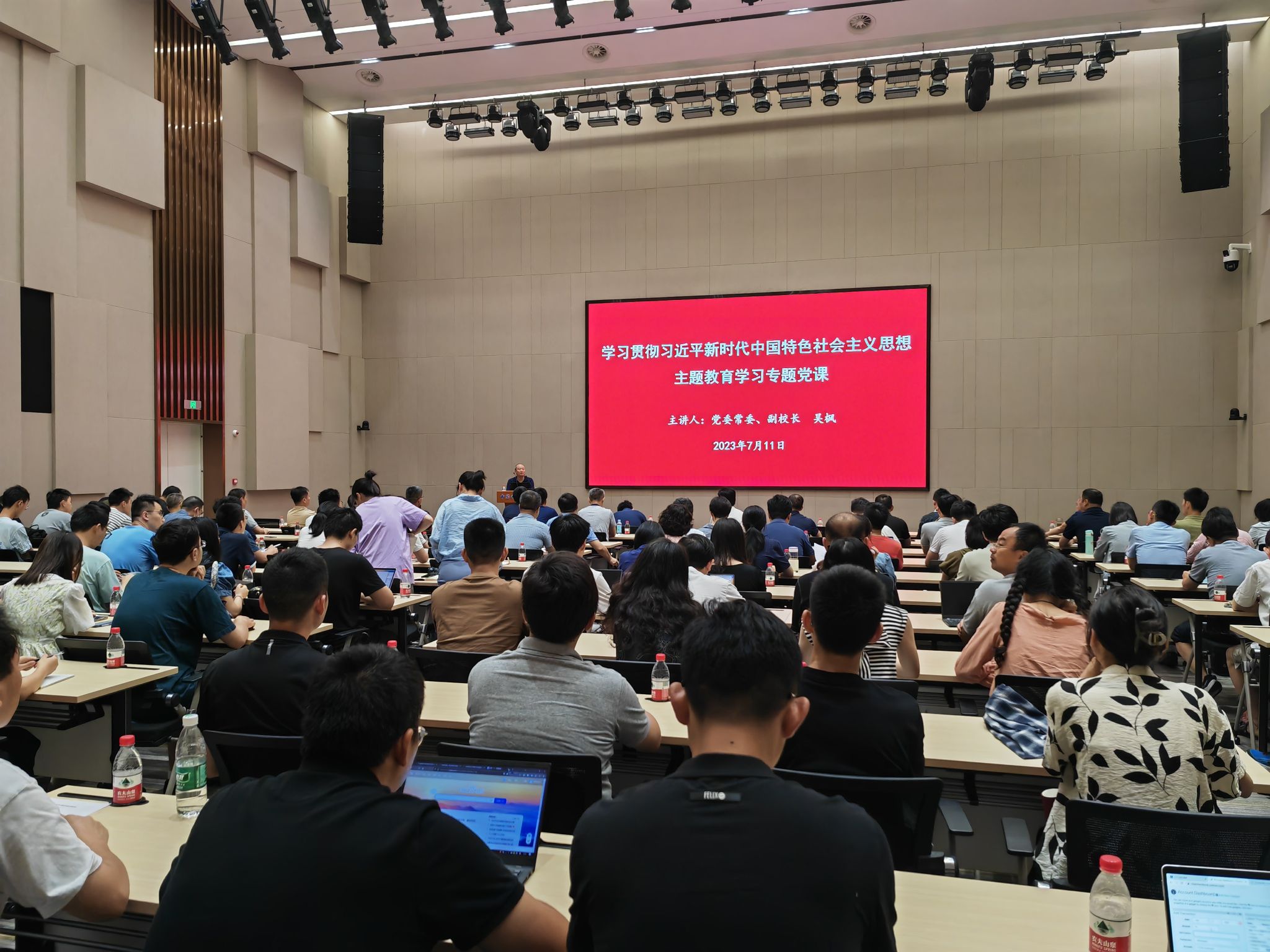 吴枫从深刻领会习近平新时代中国特色社会主义思想核心要义、充分认识开展学习贯彻习近平新时代中国特色社会主义思想主题教育的重大意义、深刻领会习近平新时代中国特色社会主义思想赋予高校的职责和使命、深刻领会党的二十大对实现科技自立自强做出的战略安排、深刻领会习近平《论科技自立自强》指导意义、探索科技成果转化新模式等六个方面作党课辅导报告。