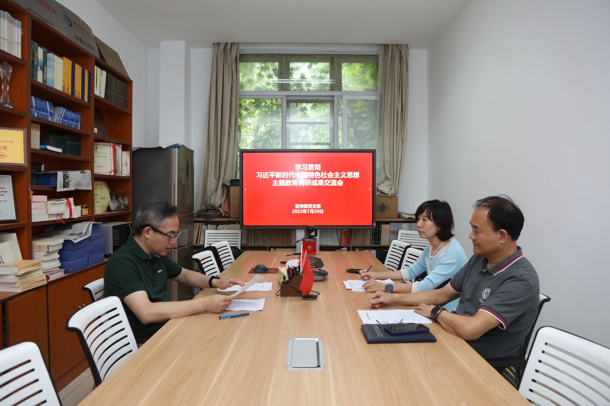 7月20日,党委宣传部召开学习贯彻习近平新时代中国特色社会主义思想主题教育调研成果交流会。常务副部长、党支部书记朱霁平主持,部门领导班子成员参加会议。