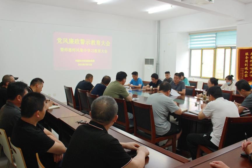 7月12日,饮食服务集团直属党支部召开党风廉政警示教育大会暨师德师风集中学习教育大会,会议由支部书记洪军主持,全体党员、集团保管员及以上管理人员、采购与招标人员参加了此次会议。