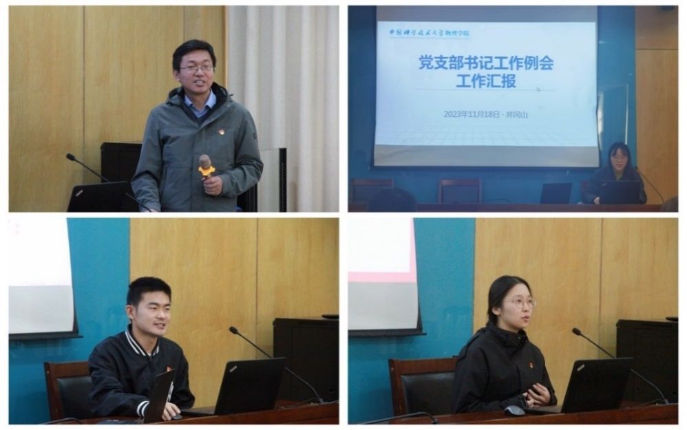 在革命老区井冈山,学院党委还组织召开了一场特别的党支部书记工作例会。会议通报了2023年物理学院党员发展情况,并对近期工作要点和党建工作中需要注意的事项进行提醒。粒子物理与原子核物理研究生党支部彭云志和凝聚态物理研究生党支部司佳琪分享了开展主题党日活动的经验,号召各党支部拓宽思路,创新载体,组织丰富多彩的党日活动。