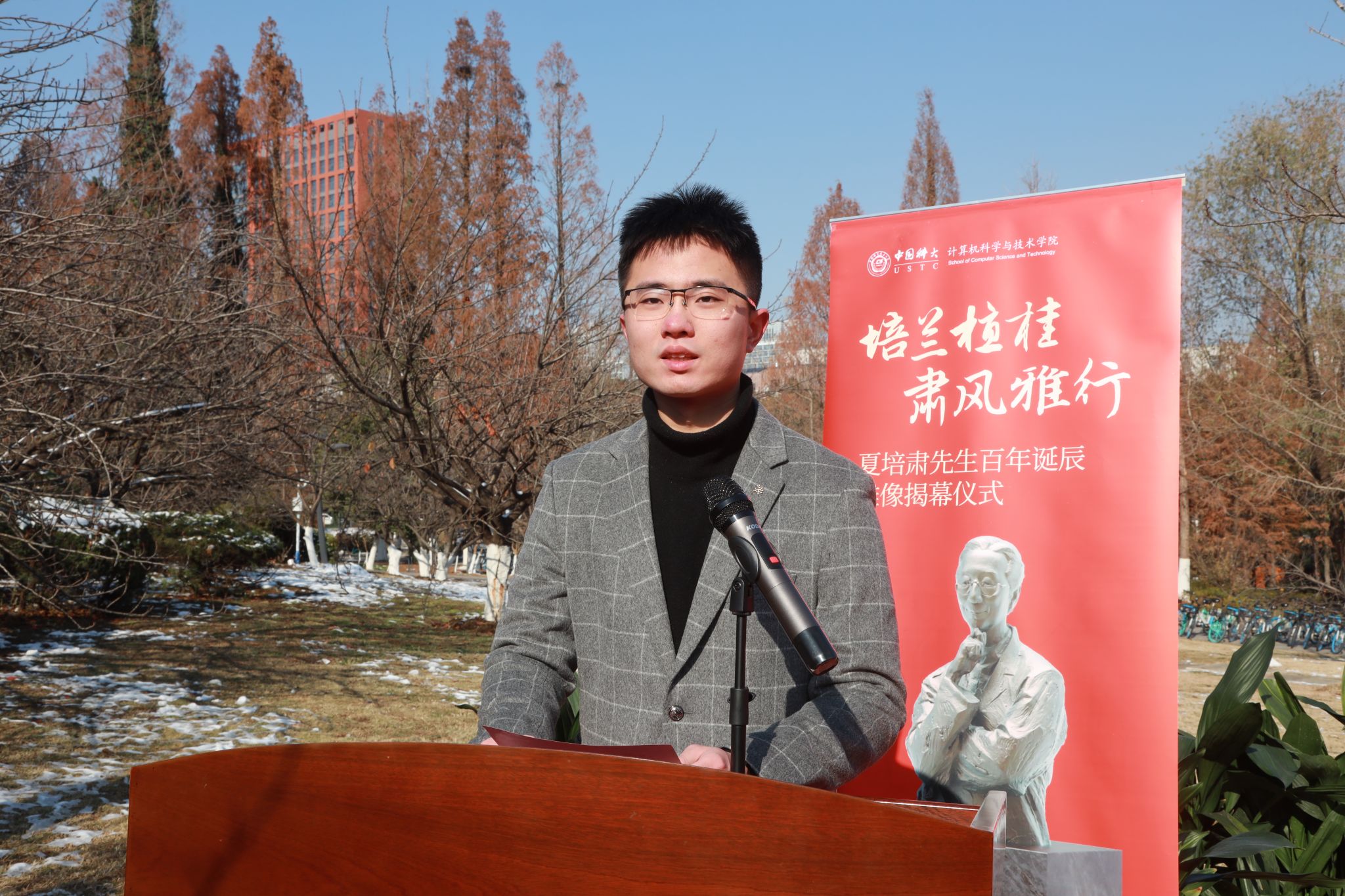计算机学院华夏英才班学生代表乐亦康在发言中说到,时至今日,夏先生的精神与事迹仍深深影响着科大计算机学院的师生们。在以华罗庚先生和夏培肃先生联合命名的“华夏英才班”中,师生们追随着先辈之懿范,求知若渴,开拓进取,争做一个大写的科大计科人。先生将继续在此守望路过的莘莘学子,激励着一代又一代科大人勇攀科学高峰,薪火相传。