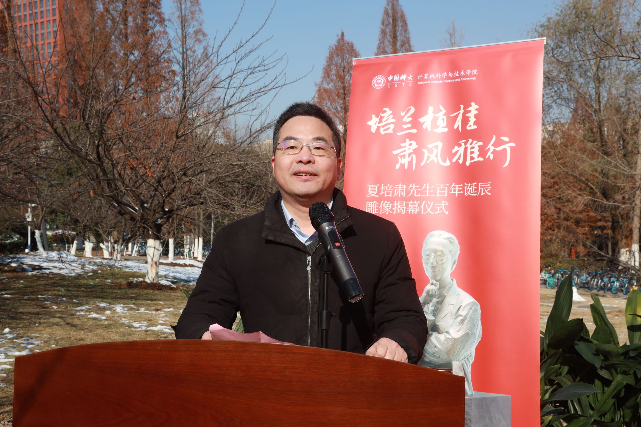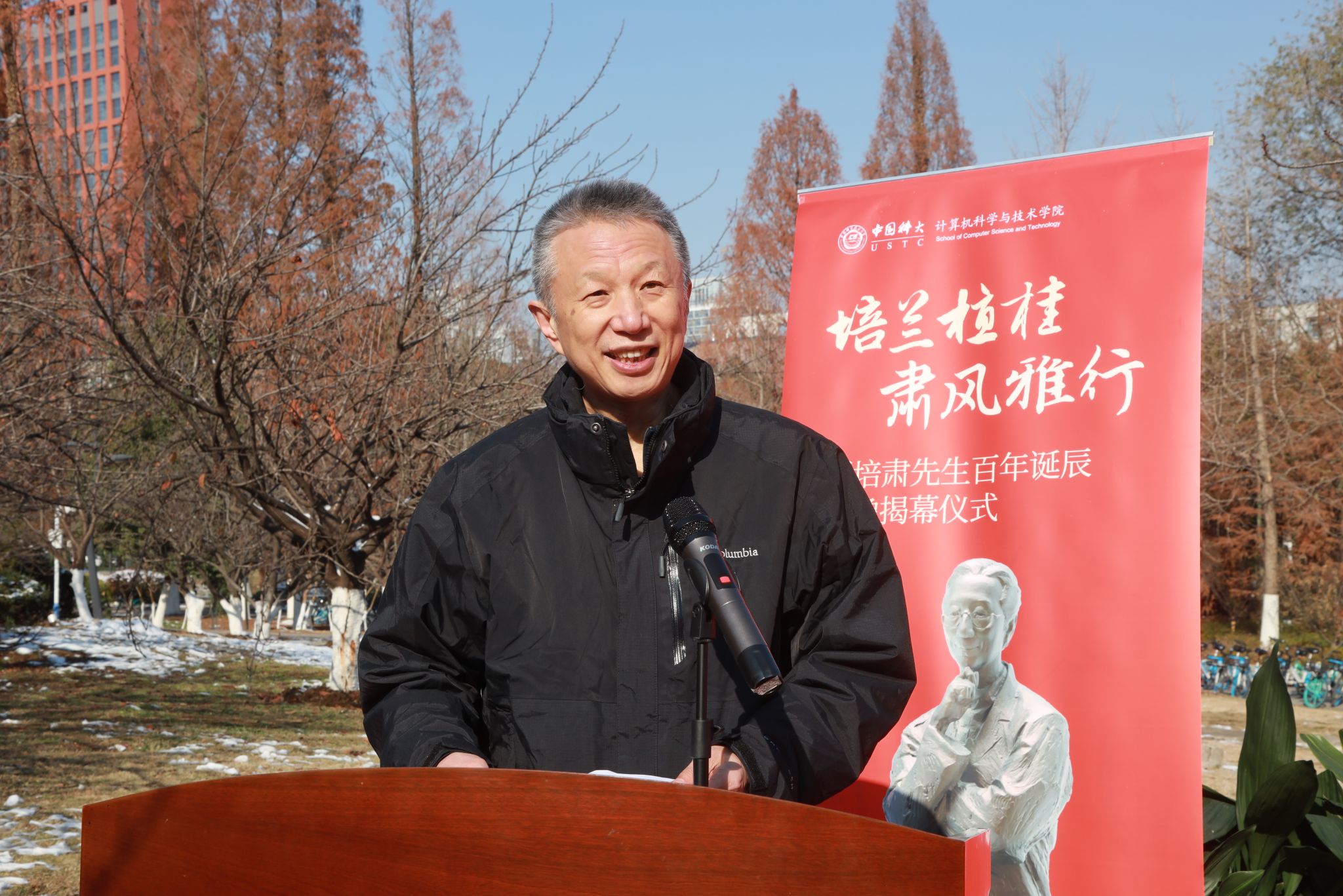 12月21日上午,“培兰植桂 肃风雅行——夏培肃先生百年诞辰雕塑”揭幕仪式在西区教学三楼东北角举行。校党委书记舒歌群,校长包信和、夏培肃先生的家属代表杨跃民,龙芯中科技术股份有限公司代表张福新、夏培肃家乡、雕像设计制作方代表、中国科大各部门、相关学院负责人,建校初期的老教师、校友代表和师生代表出席仪式。仪式由计算机科学与技术学院执行院长李向阳主持。