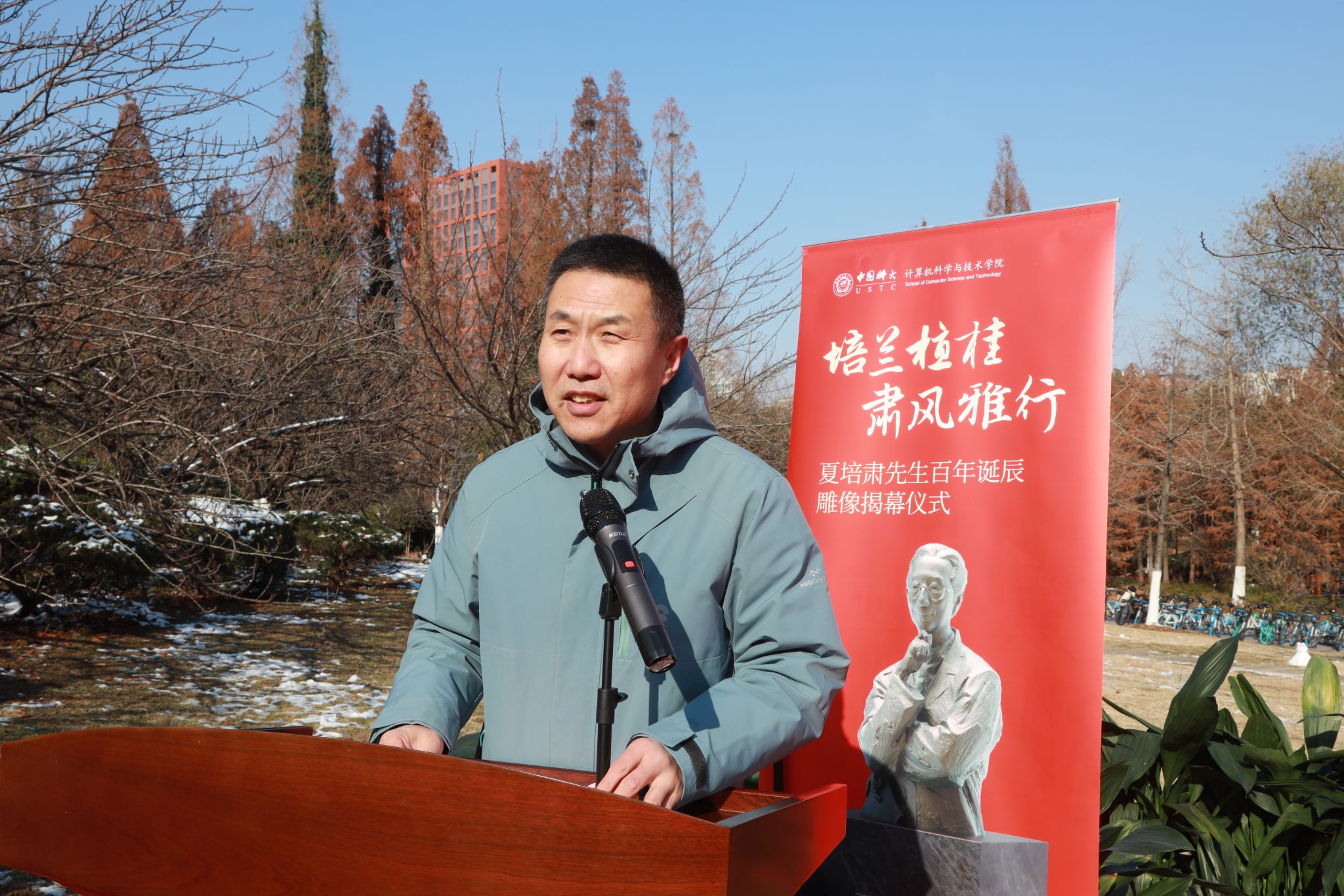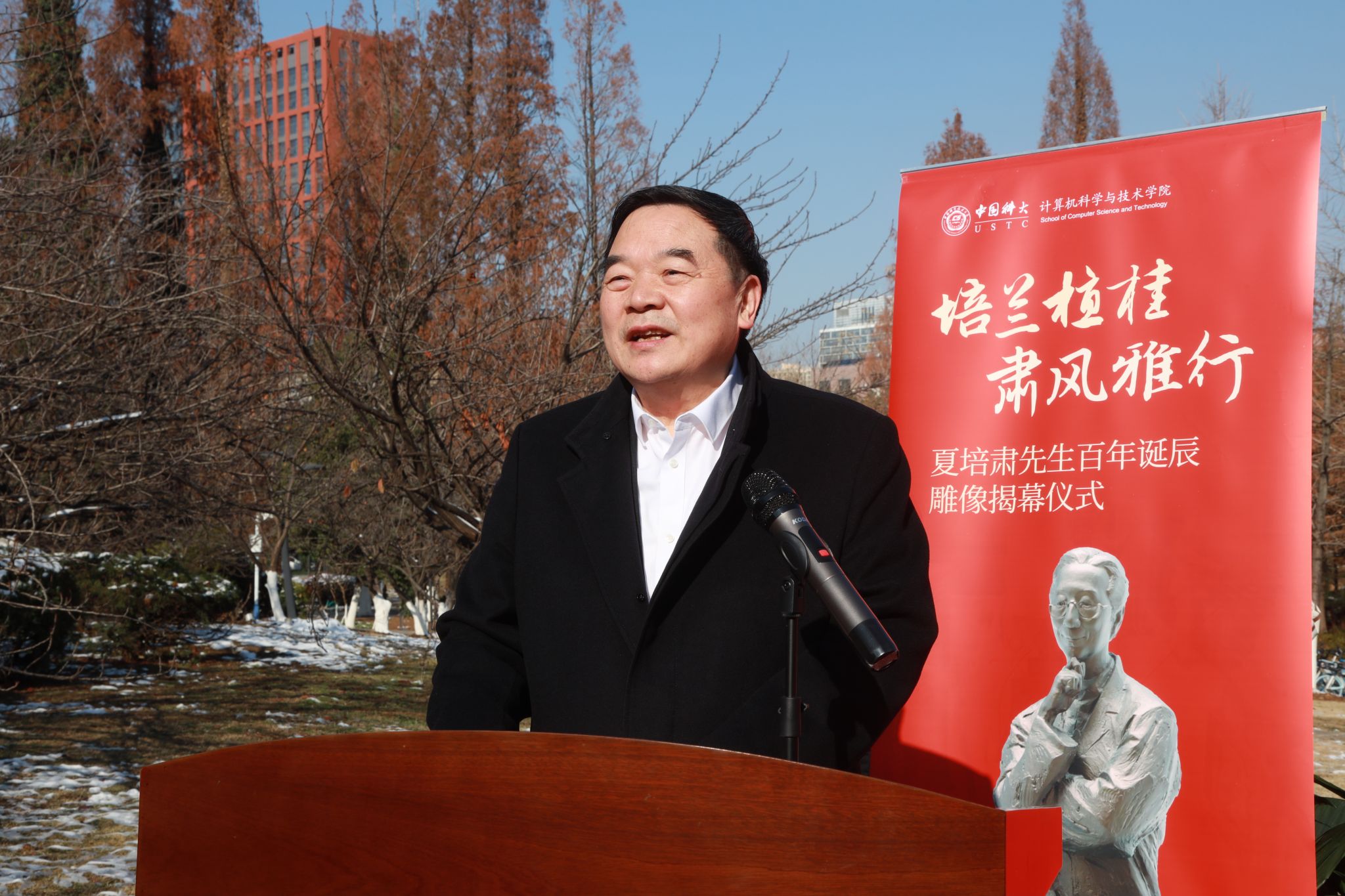校长包信和在致辞中指出,作为国内最早开设计算机专业的院校之一,在夏先生的精神引领下,经过一代代科大人的拼搏努力,中国科大计算机学科逐步发展壮大,已经成为我国计算机科学领域的重要力量。夏培肃先生追求真理、严谨治学的求实精神,创新精神,育人精神,为我们树立了楷模,影响了一代又一代的科大人。他表示,在建校65周年之际,中国科大以实际行动贯彻落实党的二十大精神,不断丰富校园科学家雕像,在五年内初步建成老一辈科学家雕像群,进一步培育创新文化,传承和弘扬科学家精神。他希望,通过竖立夏培肃先生雕像,能够让全校师生以夏先生为榜样,为建设中国特色科大风格的世界一流大学努力奋斗。