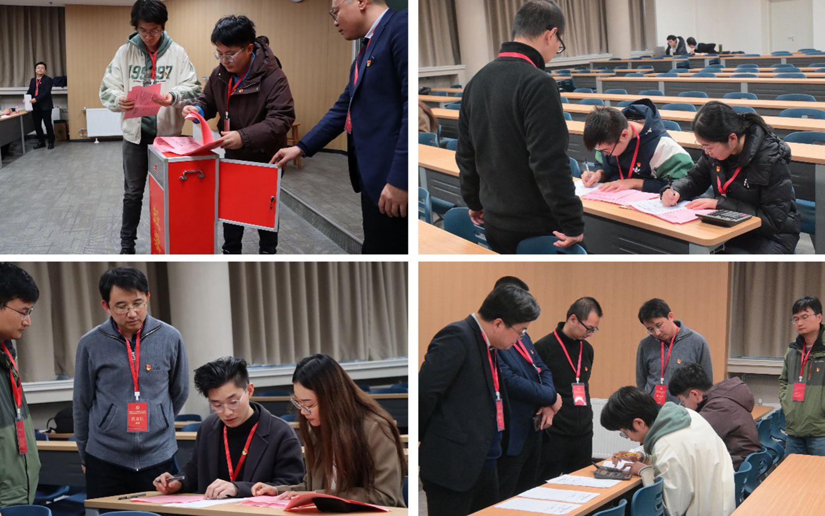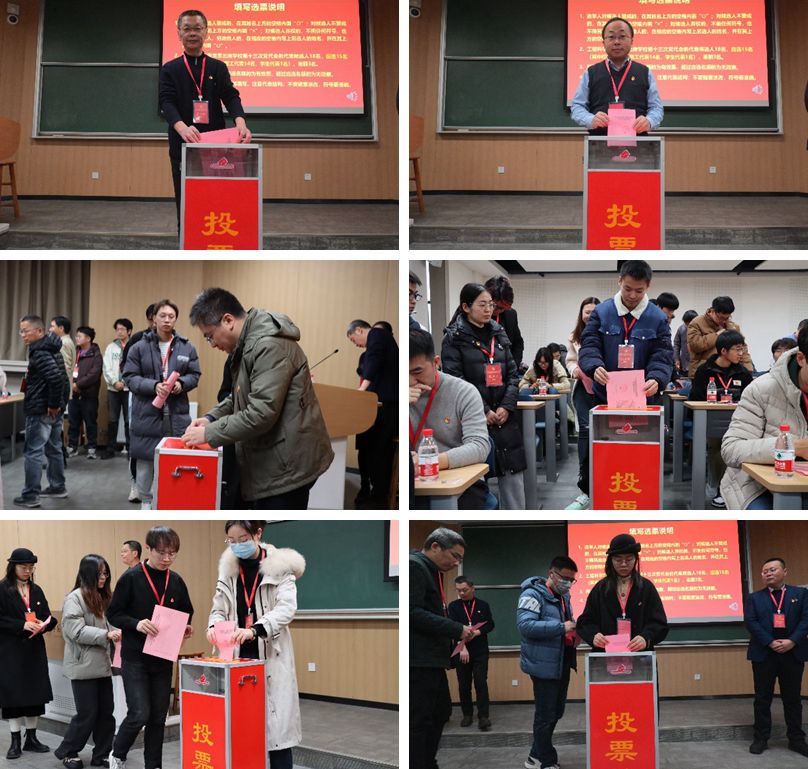 大会选举阶段,监票人当众检查票箱,计票人在监票人监督下向与会人员分发选票,总监票人就填写选票注意事项进行说明。在选票填写结束后,监票人、计票人、党员代表依次进行投票。