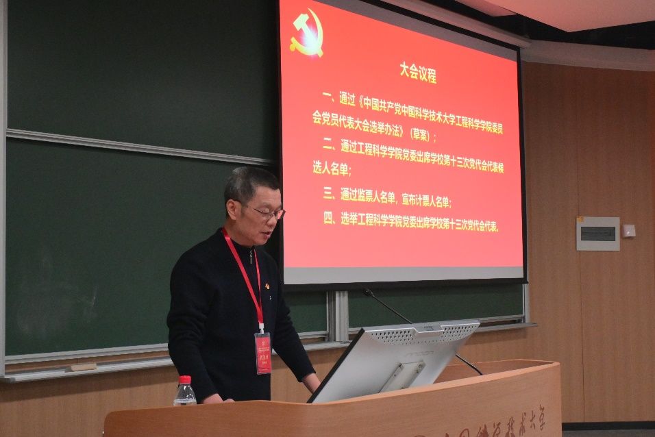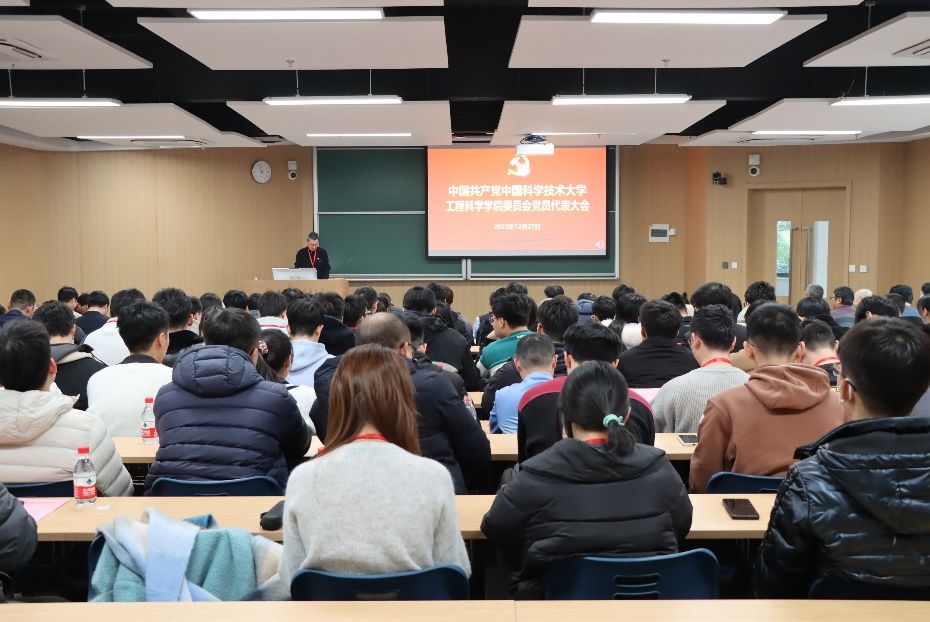 2023年12月27日下午,工程科学学院党委在西区3B101教室召开党员代表大会,选举产生出席中共中国科学技术大学第十三次代表大会代表。会议由院党委书记刘明侯主持,在校正式党员代表103人参加了会议。