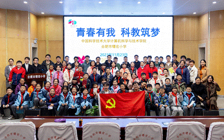 2023年11月23日下午,学院研究生智能感知党支部全体党员来到合肥市曙宏小学,为该校的四至六年级同学进行科普宣讲活动。曙宏小学校长马燕和中国科大计算机学院党委副书记宫晓梅出席了本次活动,三百余名小学生参加了本次讲座。