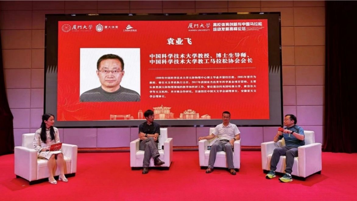 我校教职工马拉松协会会长袁业飞教授作为嘉宾参加了“高校体育创新与中国马拉松运动发展高峰论坛”。他在论坛上从自己参与马拉松运动的经历谈起,详细介绍了长跑运动在国内外高校中的历史,并分享了我校开展长跑运动对增强师生体质的独特经验,赞扬厦门大学此次举办的高校半程马拉松比赛富有人文情怀,在丰富高校体育内涵、推动全民健身广泛持续发展方面起到了引领作用。