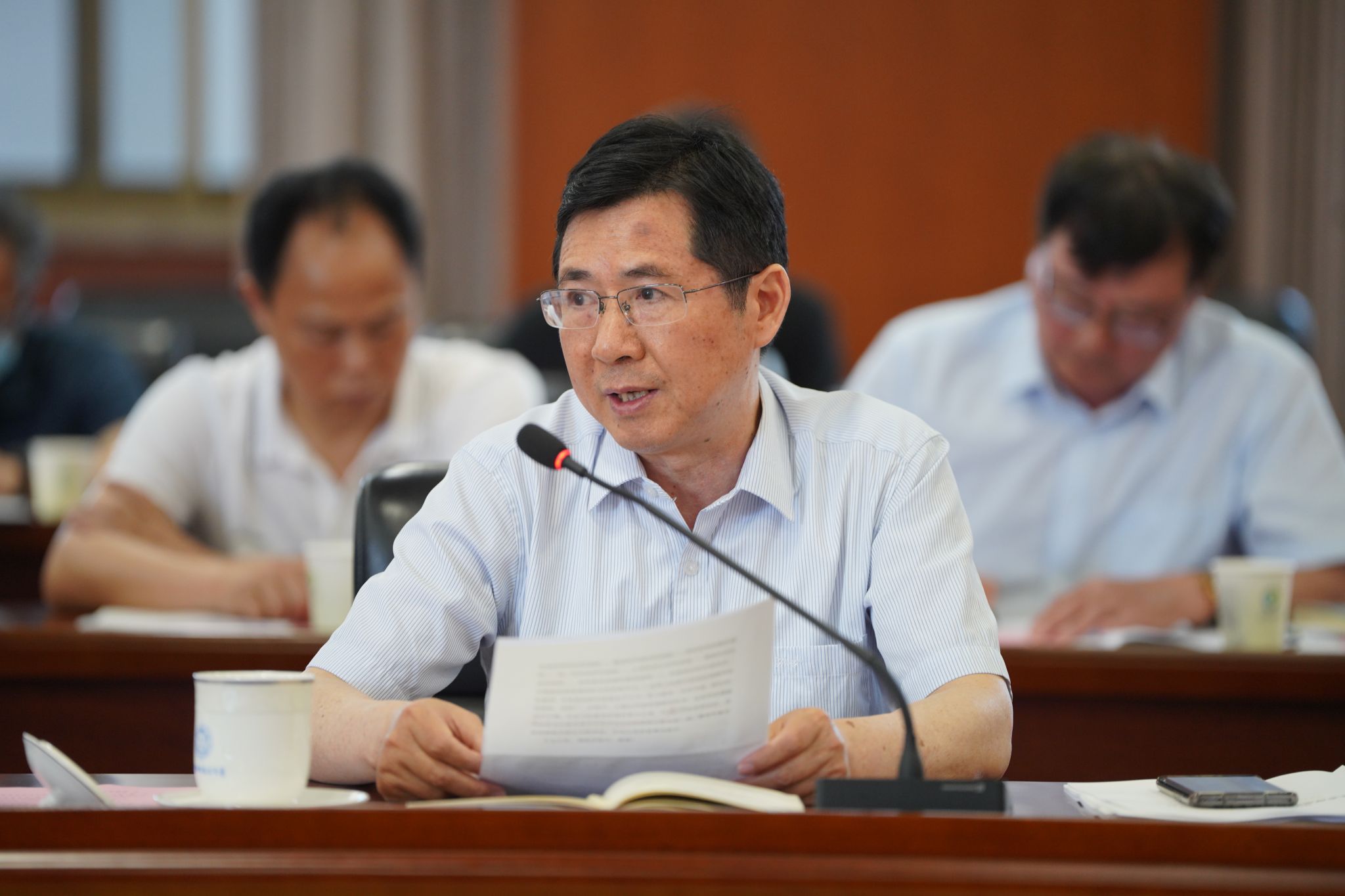 5月20日下午,校党委理论学习中心组在东活五楼报告厅召开2024年度第八次集中学习会。校党委书记舒歌群主持会议,校长包信和及在校校领导,党委委员、纪委委员,党群部门主要负责人,研究生院、教务处、马克思主义学院、基础教育集团主要负责人参加会议。