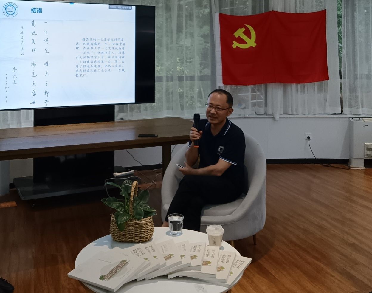今年5月30日是第八个“全国科技工作者日”。为深入学习贯彻习近平新时代中国特色社会主义思想,全面宣传以习近平同志为核心的党中央对广大科技工作者的亲切关怀和对科技工作的高度重视,充分发挥全国/安徽省科学家精神教育基地职能,5月30日中午,国家同步辐射实验室党委(核科学技术学院党委)在“8348”学术咖啡吧成功举办第五期8348师生沙龙——“师说”。校档案文博院执行院长方黑虎、副院长兰荣作为特邀嘉宾出席,国家同步辐射实验室赵忠尧合肥先进光源突击队成员、核科学技术学院师生联合党支部成员、各党支部代表近40人参加了活动。本次沙龙由党委副书记周婷主持。