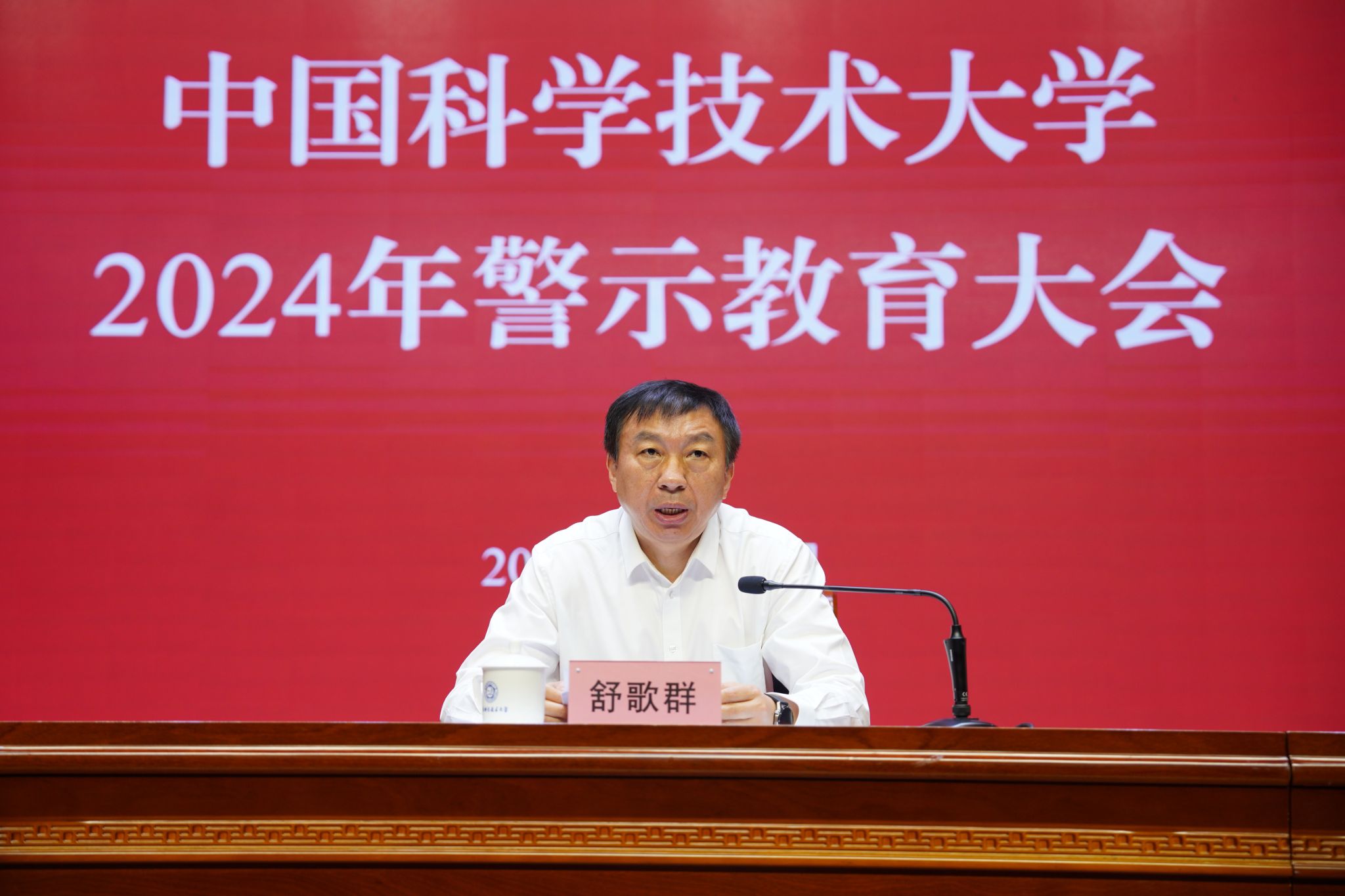6月24日上午,中国科学技术大学在东区水上报告厅召开2024年警示教育大会。校党委书记舒歌群主持会议并讲话。在校校领导,党委委员,纪委委员,全体中层干部,院级党组织纪检委员,师生党支部书记代表,离退休党员干部代表等参加会议。中国科学院党纪学习教育专班派人列席会议。