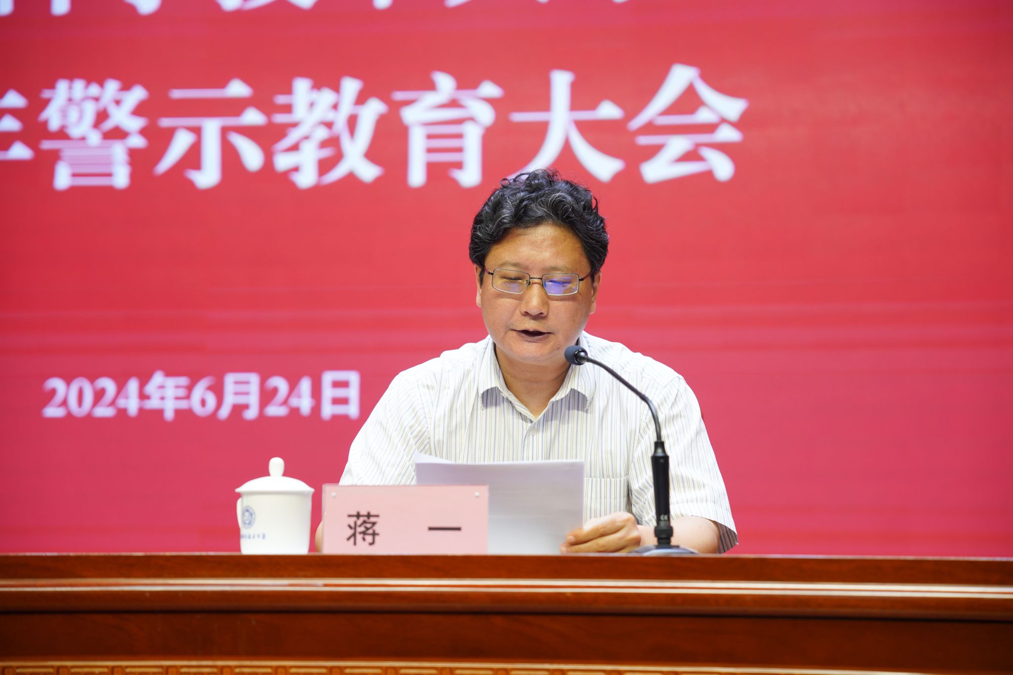 舒歌群指出,习近平总书记关于全面加强党的纪律建设的重要论述,为加强新时代党的建设、推进党的自我革命指明了前进方向,为我校正在开展的党纪学习教育提供了根本遵循。党纪学习教育开展以来,校党委将其作为重要政治任务,及时跟进学习习近平总书记关于党纪学习教育的最新重要讲话、指示批示精神,学深悟透《中国共产党纪律处分条例》的精髓要义,以实际行动推进党纪学习教育走深走实。学校召开本次警示教育大会,就是要以案促学、以案说纪,用身边事教育身边人,让心存敬畏、手握戒尺真正成为日常自觉。