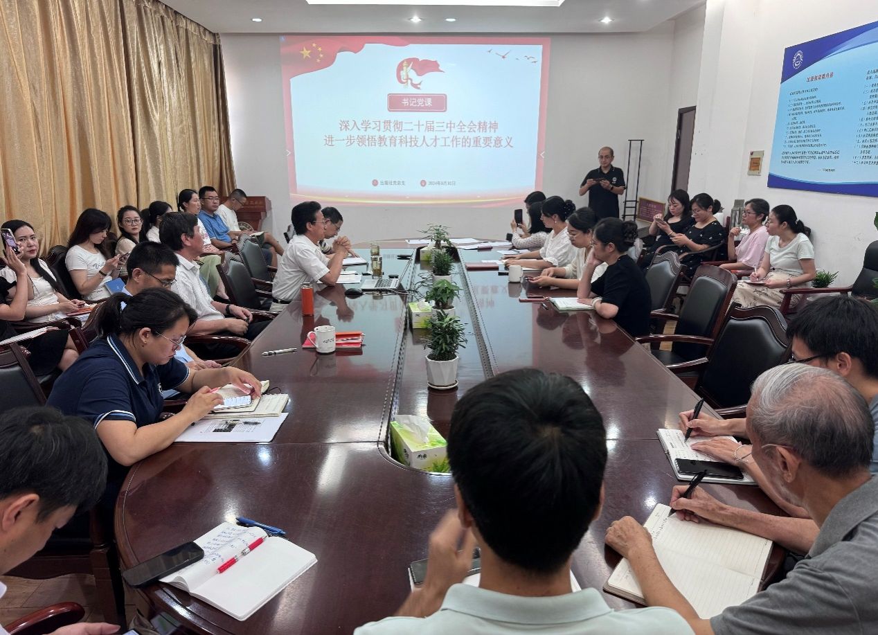 8月30日下午,出版社在二楼会议室开展党课集中学习,出版社党工委常务副书记、党总支书记蒋家杰作“深入学习贯彻党的二十届三中全会精神,进一步领悟教育科技人才工作的重要意义”党课报告。出版社党总支理论学习中心组成员、全体党员、青年理论学习小组成员以及新入职员工参加了学习。