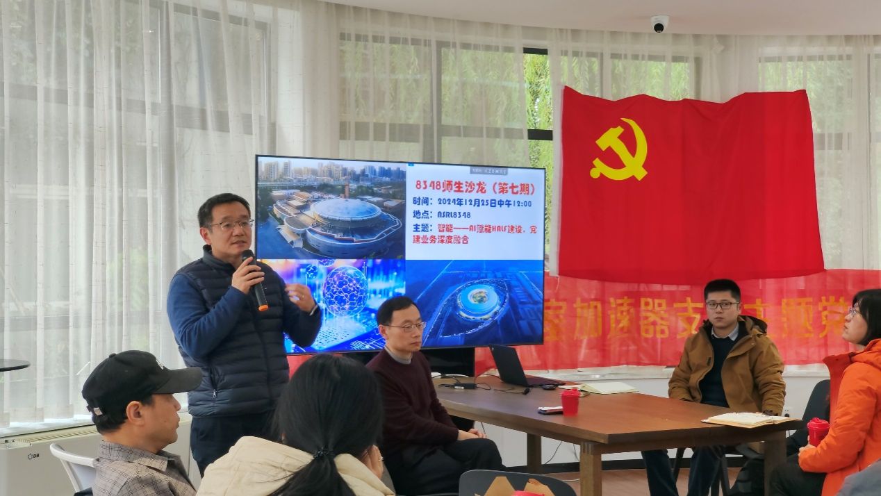 12月25日中午,国家同步辐射实验室党委(核科学技术学院党委)在“8348”学术咖啡吧开展第七期8348师生沙龙活动,本期活动主题为“智能”。国家同步辐射实验室党委(核科学技术学院党委)书记李良彬、副书记周婷,以及40余位师生代表齐聚一堂,深入学习人工智能在同步辐射光源中的应用,探讨合肥先进光源(HALF)工程建设中的机器学习研究。活动由国家同步辐射实验室加速器部教工党支部书记刘功发主持。