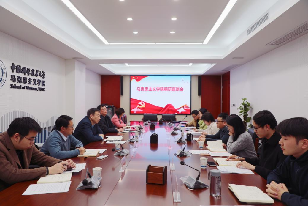 青年思政课教师孔亮、虎旭昕、陈慧瑞、刘海龙、赵琼、苏振源、陈海超围绕学习贯彻落实习近平总书记重要指示精神和中央工作会议精神、学校近年来全力支持马院建设发展的举措、学院在激励教师提高教研科研成果方法等方面畅谈体会,并就思政课如何把道理讲深、讲透、讲活,中国科大精神支柱和创新成果等相关案例融入教学以及如何做到教研和科研均衡发展等进行探讨。学院领导褚建勋、刘立、汤俪瑾聚焦进一步加强思政课建设,建设高质量马克思主义理论学科以及高水平的师资队伍等重要工作进行交流。