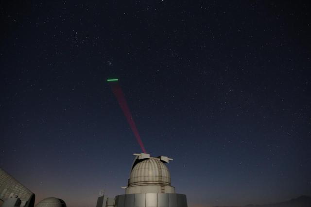 2016年11月28日,在河北兴隆观测站,“墨子号”量子科学实验卫星过境,科研人员在做实验(合成照片)。 新华社记者 金立旺 摄