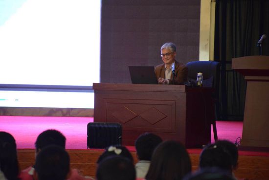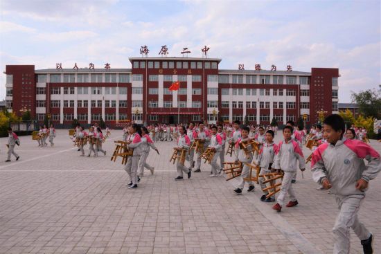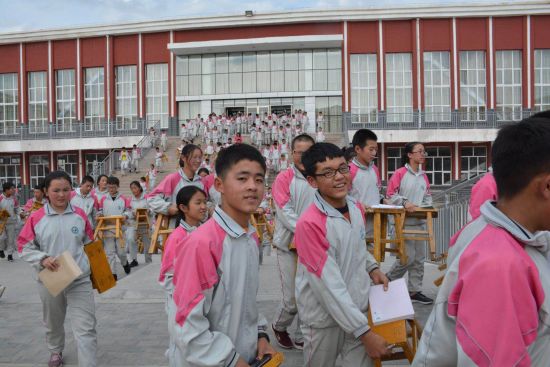 5月30日,宁夏海原二中的中学生听完中国科大杨圣老师《传感技术科普报告》后,抱着自带的板凳返回教室。