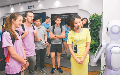 7月13日,作为中国科学技术大学“未来科学家”国际夏令营的活动之一,来自中国科学技术大学、美国哈佛大学、耶鲁大学等中外高校的学生走进位于安徽合肥市的科大讯飞股份有限公司,近距离了解智能语音科技产品,感受人工智能科技的魅力。图为“未来科学家”国际夏令营的营员在科大讯飞参观。