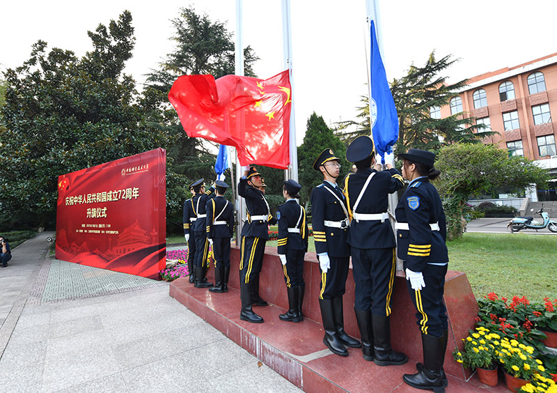 人民网北京10月1日电 (记者李依环、熊旭、郝孟佳、温璐、孙竞)为庆祝新中国成立72周年,迎着清晨第一缕阳光,全国多所高校今天隆重举行国庆升旗仪式。同学们在鲜艳的五星红旗下,共唱国歌,表达浓浓的爱国之情、报国之志。