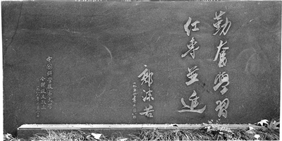 红色,是中国科大最鲜亮的底色。“迎接着永恒的东风,把红旗高举起来,插上科学的高峰。”1958年,在由郭沫若校长作词的中国科大校歌《永恒的东风》里,他对学生提出了“又红又专、理实交融”的要求。为了使学校有声有色地继承抗日军政大学的优良传统,他特意请抗大校歌作曲者吕骥为校歌谱曲。在1959年开学典礼上,他发表了题为《勤奋学习,红专并进》的致辞,并专门题赠“勤奋学习,红专并进”激励学子。1988年9月,在建校30周年之际,“勤奋学习,红专并进”作为中国科大的校风正式确立。如今的校训“红专并进,理实交融”都源于郭沫若校长,后经不同时期提炼和概括,已在一代代中国科大人身上发扬光大。