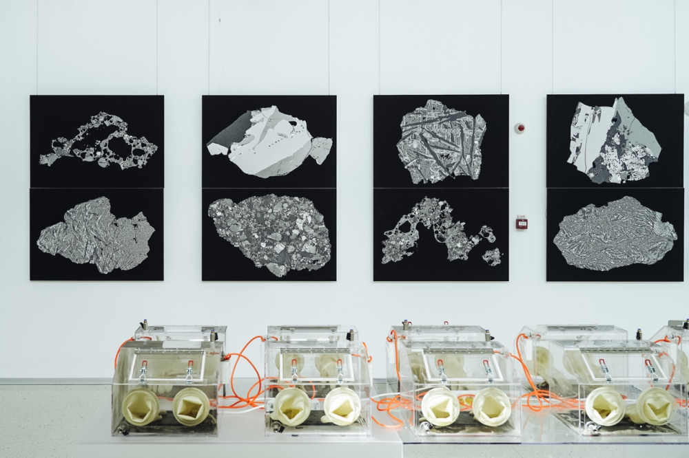 展览作品是在中国科学技术大学四个研究月壤的科学实验室和中国科学院地质与地球物理研究所的支持下,由中央美术学院、中国科学技术大学艺术与科学研究中心IN THE LAB科学摄影小组联合创作。