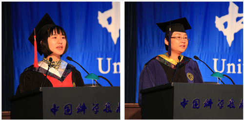 毕业生代表、生命科学学院博士生林俊同学代表科学学位获得者发言。她说,身为科大人是富足的、健康的、幸福的,她对母校的培养和父母的养育表示感谢。她表示,博士毕业既是终点也是起点,作为即将踏上新征程的“科大人”,会不忘初心,竭力追求,“今天我以科大为荣,明天科大以我为荣”。