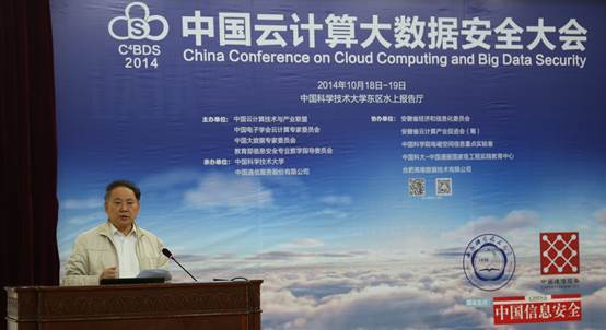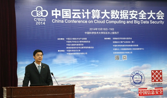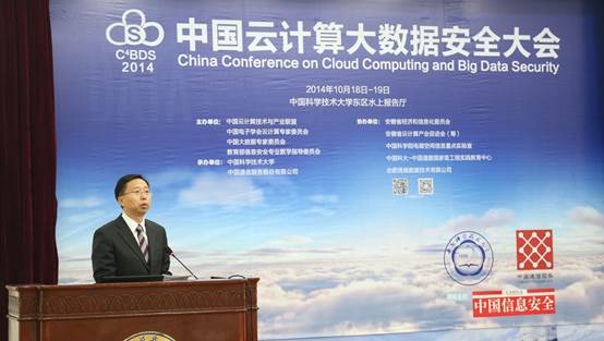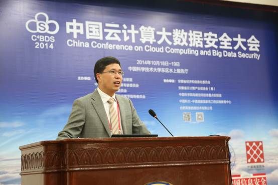 10月18日-19日,2014中国云计算大数据安全大会(C4BDS 2014)在中国科大东区水上报告厅召开。中国科学技术大学副校长张淑林、中央网信办网络安全协调局局长赵泽良、中国通信服务股份有限公司副总经理梁世平、中国电子学会副秘书长林润华出席开幕式并致辞。中国工程院院士沈昌祥院士出席大会并作特邀报告。开幕式由大会主席、中国科学院电磁空间信息重点实验室副主任、中国科大信息学院俞能海教授主持。