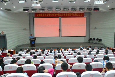 9月13日上午,省直机关青少年与中国科学技术大学少年班学院学生“学习践行社会主义核心价值观教育”专题活动在中国科大校园内举行。此次活动主题为“读书、报国、圆梦,践行社会主义核心价值观”。省关工委主任季家宏,省关工委常务副主任张晓兰、李朝宝、刘玉尧、聂皖辉,省直党工委副书记郭法成,中国科大党委副书记蒋一,少年班学院执行院长陈旸,少年班学院书记尹民等出席活动。 活动由中国科大关工委副主任鹿明主持。