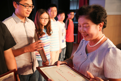 本次入学教育活动还对程志南、郭会东等16位为研究生招新工作做出突出贡献的志愿者进行了表彰,张淑林副校长亲自为他们颁发奖牌。