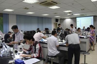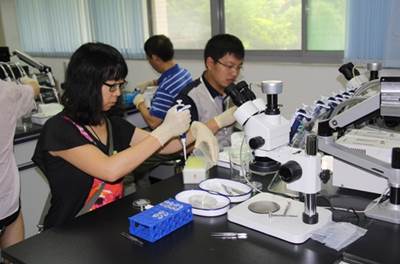 大会第二天,与会代表在中国科大生命科学学院国家级实验教学示范中心参与了三个前沿性较强的细胞生物学示范实验,完成了微丝蛋白的免疫荧光标记与观察、斑马鱼活体细胞迁移的诱导及观察以及基于报告基因体系的植物干细胞定位及观察,并取得了非常好的效果。这种兼顾细胞生物学前沿技术和基础实验教学、兼顾理论和实践的研修班模式让参会代表们普遍感到收获颇多,代表们对这种理论结合实验的会议方式给予了充分肯定。