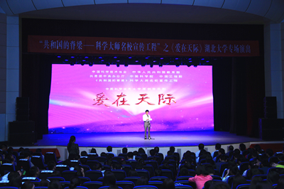 5月7日至9日,作为2014年“共和国的脊梁—科学大师名校宣传工程”汇演的剧目之一,由我校排演的大型原创多媒体音乐剧《爱在天际》走进武汉,在湖北大学连续上演三场,分别面向高校师生、中学师生和社会公众。