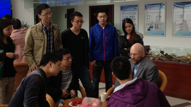 4月18日下午,Shearer教授还做了另一场题为“Observing and modeling elastic scattering in the deep Earth”(观测及模拟地球内部弹性散射体)的邀请报告。报告会后,Shearer教授参加了固体地球物理专业的周五下午茶活动,与多位研究生进行了亲切的交流,对研究生在报告会中及下午茶活动中积极主动的提问和讨论表示出肯定和赞许。
