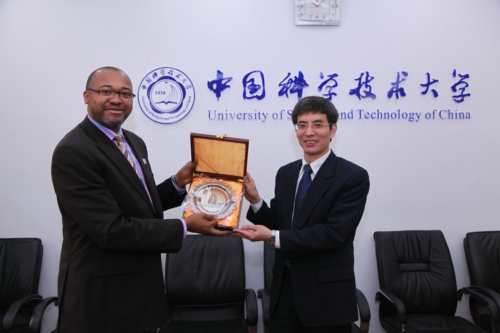 皮纳斯先生详细介绍了苏里南共和国的地理位置、历史文化、教育科技等情况。陈初升表示,欢迎更多的来自苏里南的学生通过申请中国政府(CSC)奖学金和中国科学院-第三世界科学院(CAS-TWAS)奖学金来科大学习。随后,双方还就苏里南政府官员来我校培训、在我校建立加勒比海教育研究中心的可能性进行了探讨。