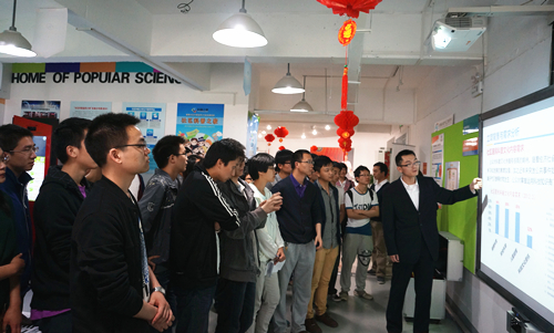 4月9日,在魏英的带领下,我校各学院40名同学走进了此次系列参观活动的第一站——安徽省科普产品工程研究中心。科普中心执行总经理、我校校友刘伟、人力资源部长及部分在企业任职的科大校友全程陪同,并与师生们进行了深入的交流。座谈会上,刘伟为同学们详细介绍了科普产业的前景、科普工程中心的现状及最新业务进展状况,就科普云项目进行了详细的说明,欢迎科大优秀学子来中心实习、就业。人力资源部长对中心人才结构情况做了简单介绍,就人才招揽计划进行了说明。几位校友代表与同学们交流了工作后的领悟与收获,并与现场学生互动交流。多名学生参与讨论沟通,并当场签订了实习就业意向书。同学们对科普云项目、社区科普之家、科普屏媒等最新研究成果表现出了浓厚兴趣,座谈会之余进行了各项目的亲身体验。