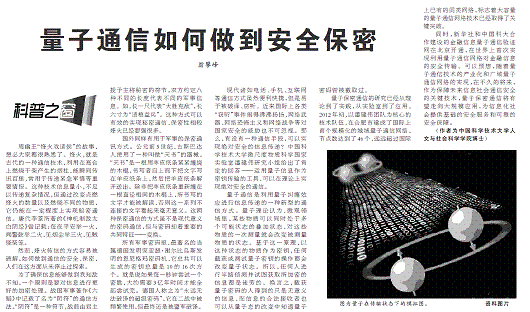 目前,该栏目已发表我校研究生撰写的“是谁发明了手机”(1月10日)、“量子通讯如何做到安全保密”(1月20日)、“防火:古今各有高招”(1月24日)和“太空望远镜:揭开星空的面纱”(2月7日)等4篇科普作品,稿件被人民网、新华网、科技日报网等网络媒体广泛转载。