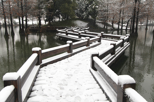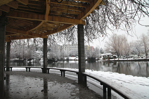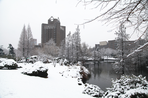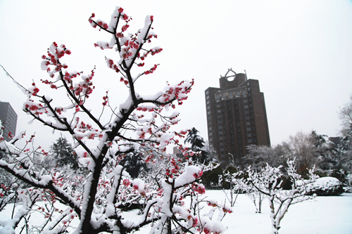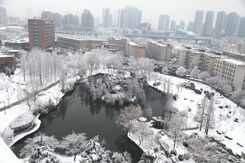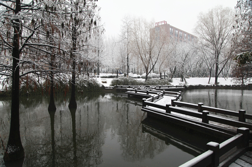 “白雪却嫌春色晚,故穿庭树作飞花。”(韩愈《春雪》)2月18日,忽如其来的一场春雪将科大校园装点成了冰雪世界,漫步在纷纷扬扬的雪中,别有一番情趣。东西校区景致各异,都有自己独特的美丽之处。也西湖的九曲桥,眼镜湖的一鉴亭,红梅映着白雪,分外娇艳。春雪来了,春天也该不远了吧。新闻中心记者特别拍摄了部分校园雪景图片,以飨读者。——新闻中心