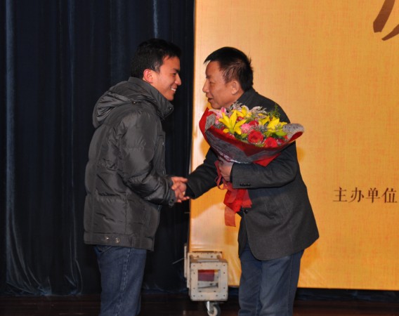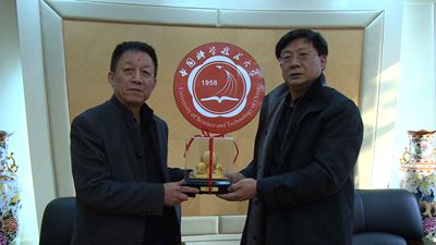 演讲开始前,校党委书记许武会见了易中天教授,并代表学校向易中天赠送了孺子牛纪念品。