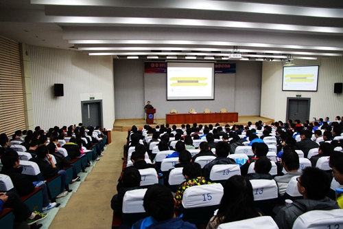 物理学院执行院长刘万东教授也给在场的同学们提出了他的要求。他说,今天是中国科大和南京大学联合举办的研究生学术年会,同时邀请了物理学院2013级的本科生参加此次活动。本科生和研究生处于人生的两个不同阶段,本科阶段主要任务是学习,掌握学习的方法;研究生课程已经学习完,开始做科学研究,即主要任务是创造新知识并掌握创造知识的方法。大家都知道发表文章很重要,但是请大家不要忘了,即使发了文章,而没有掌握创造知识的方法,也不算一个合格的研究生。希望同学们在研究生学习过程中重点注重这方面的锻炼,学术年会是通过展示成果、交流成果来达到提高自己科研素质的目的,这两部分学生应该有个互相交流的机会。同时,他还向同学们介绍了中国物理学一级重点学科大学联盟(北京大学、复旦大学、南京大学、清华大学、中国科大)的筹划工作,联盟将固化五校在人才培养、学生交流、学科发展、人才引进等相关领域的交流合作,从而更好地发挥五校在我国物理学及相关领域人才培养中的关键性作用。