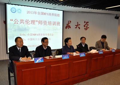 12月14日,来自全国30多所高校的近80位骨干教师、学科带头人汇聚中国科大,参加由全国公共管理专业学位研究生教育指导委员会主办、中国科大公共事务学院承办的“2013年全国MPA核心课程‘公共伦理’师资培训班”。