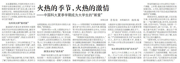 6月20日,《中国科学报》以“让早慧的梦想绚丽绽放”为题刊发长篇报道,介绍了中国科大少年班35年来在人才培养上的创新与探索。《科技日报》、《中国教育报》等也刊发了同主题的报道。