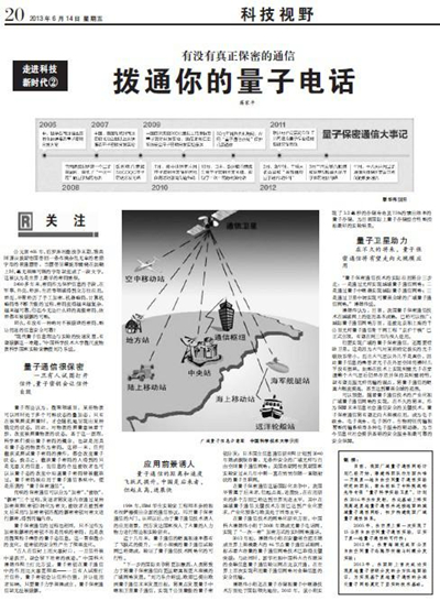 12月22日,中央电视台新闻联播以“潘建伟:70后院士的量子通信梦”为题,报道了潘建伟及其团队在量子信息科技领域取得的杰出成就。报道说,43岁的潘建伟是我国最年轻的院士,12年前他毅然离开国际顶尖的量子研究单位回国组建实验室,在他的带领下目前我国量子信息技术已跻身世界一流水平。