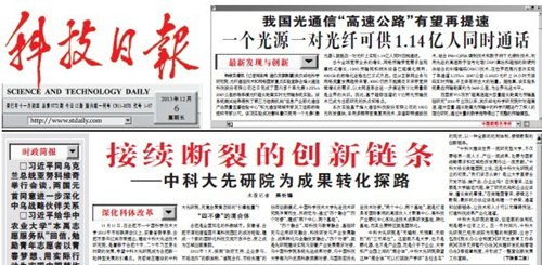 12月6日,《科技日报》头版头条以“接续断裂的创新链条— 中科大先研院为成果转化探路”为题,报道了中国科大先进技术研究院成立一年多以来的可喜进展。报道说,这里既不是大学,也不是孵化器,也不是产业园,而是介乎于企业、大学和产业园之间的“混合体”,中科大先研院期望这种“混合体”可以打破政产学研“各拉各车”的现状,以一种全新的机制体制,接续断裂的创新链条。