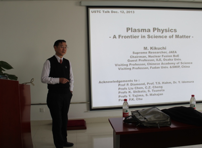 12月12日,日本原子能机构(JAEA)著名专家M. Kikuchi教授来核科学技术学院访问,并做题为“Plasma Physics – A Frontier in Science of Matter”(“等离子体物理-科学前沿研究”)的报告。来自核科学技术学院、物理学院等五十余名师生参加了报告会。报告会由核学院副院长叶民友教授主持。