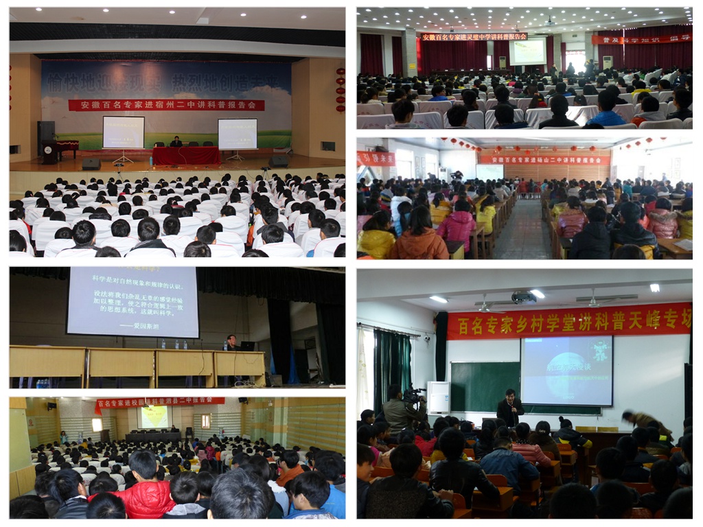 专家们以“月球探测与载人航天”、“两极归来看两极”、“力学在航空航天和军事科学中的应用”、“侃成语悟力学”为报告题目,分别赴淮南八公山一中、凤台四中、濉溪中学、蚌埠三十一中、固镇县三中、六安汇文中学、六安张店中学、福建泉州七中、福建泉州五中、福建莆田一中、福建莆田六中、六安天峰初中、砀山二中、萧县一中、泗县二中、灵璧中学、宿城一中、宿州二中等中学讲科普18场,受众达12800多人。