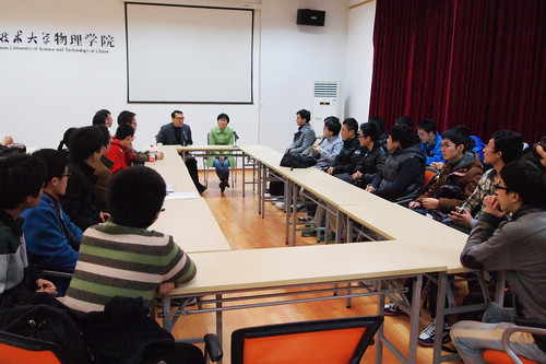29日晚,厦门大学来访师生与严济慈班以及物理学院其他班级的同学们进行了座谈交流。两校同学们围绕如何培养科研能力、如何分配学习与课余生活时间、科大自由转专业等话题热烈地交流了各自看法。