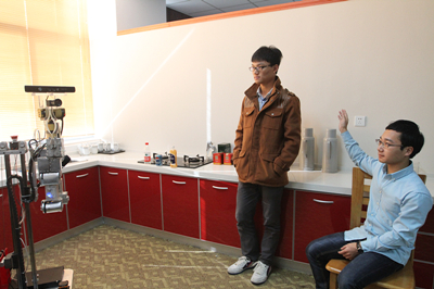 实验室被布置成一个常见的家庭环境,十几个“客人”在各自选择的位置上或站或坐。其中一名客人向可佳机器人挥手,可佳很快向他走过来,识别和记忆他的外表特征,并询问有什么需要。