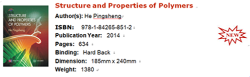 我校英文版教材“Structure and Properties of Polymers”首在英国出版