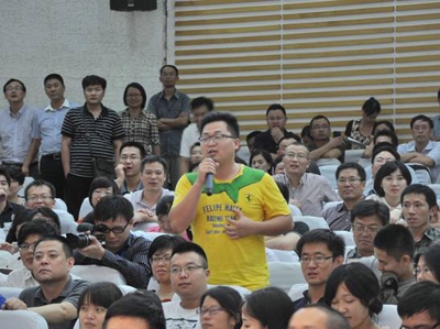 8月23日晚,中国科大东区理化大楼东三报告厅内掌声雷鸣,气氛异常热烈,由中国科学技术大学管理学院与校友新创基金会主办的2013亚布力中国企业家论坛夏季高峰会之“科大之夜”活动在这里进行。中国科大副校长张淑林,管理学院副院长余玉刚,特邀嘉宾万科企业股份有限公司董事会主席王石,联和运通控股有限公司董事长张树新,神州数码控股有限公司董事局主席郭为,中泽嘉盟投资基金董事长吴鹰,东软集团董事长兼CEO刘积仁,泰康人寿董事长陈东升出席了会议,500余名企业家以及中国科大管理学院校友和师生代表参加了本次盛会,亚布力中国企业家论坛理事、美通无线公司董事长王维嘉校友担任本次活动的主持人。