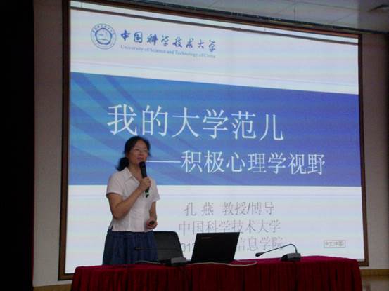 8月26日晚,信息科学技术学院给刚到校的新生们举办了一场别开生面的大学生心理健康专题报告会,报告会由校心理教育中心主任、学生工作处副处长、人文素质教学研究部主任孔燕教授主讲,主题是“我的大学范儿”,院党委唐安渝书记、各新生班主任以及200多名本科新生参加了报告会。