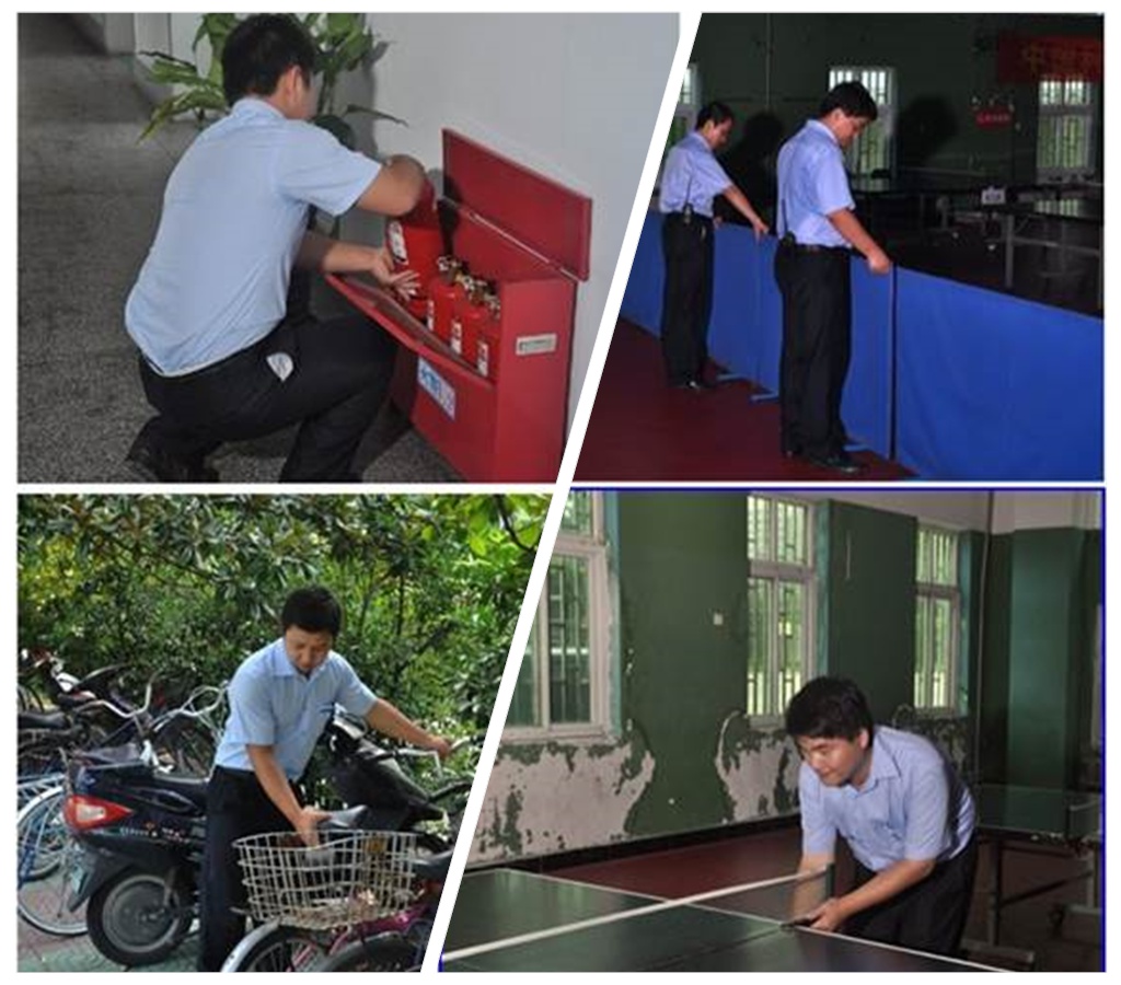 此刻的体教中心,在王队长的带领下,全体员工抓紧休整辖区内的体育器材,摆围栏,校正球网的位置,可谓精益求精。体教中心的场所面积大,许多设施还处于露天状态,高温下的例行巡视,使大家衣裳湿透。但站岗一分钟、尽职六十秒,这一观念早已深入每一位秩序维护员的心中。