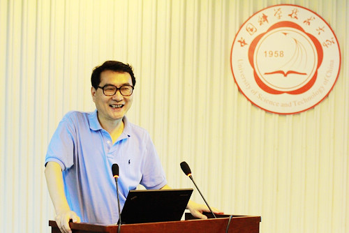 夏令营组委会副主任、物理学院副院长王冠中教授致闭幕词,他对首届“未来物理学家国际夏令营”活动的成功举办表示欣慰,并肯定了营员们短短两周实验室学习后展示的精彩的研究报告,鼓励大家回到自己的学校后还能与科大的同学继续深入交流研究课题,希望大家将来有机会再来到中国,再来到科大。
